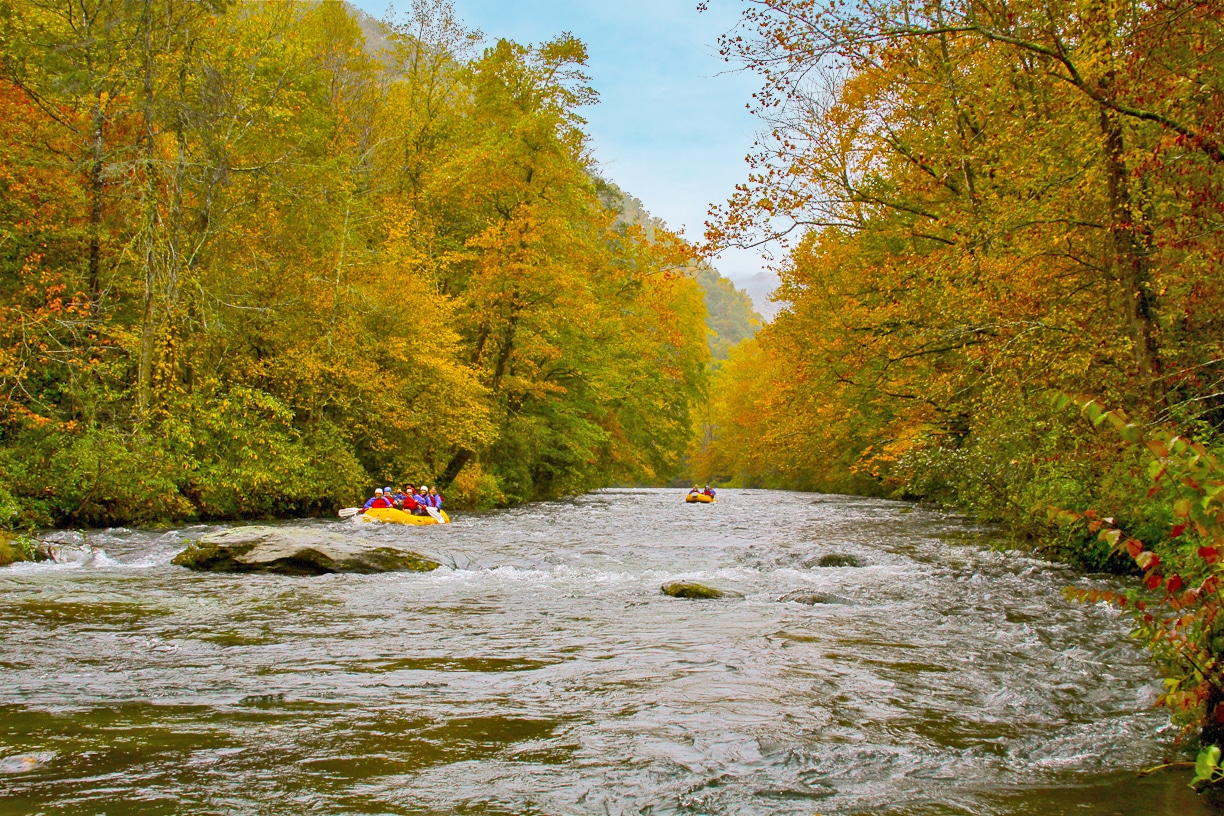After your raft is ashore, it feels good to stretch your legs and wander a bit. Squeezing in a little more time in nature is an added bonus. Close to Bryson City, Deep Creek offers beautiful creekside scenery, cascading waterfalls, and gentle trails. This area is especially gorgeous in the fall, with peak color stretching into late October and early November. From NOC, you can step onto the Appalachian Trail nearby to take in forest views – but be warned that the trail gets steep quickly!