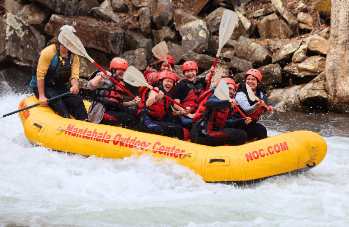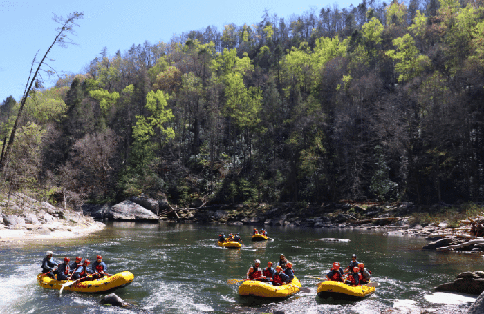 - Nantahala River, NC – Cool, clear, and scenic. A great option for families or anyone looking to ease into the season with a splash at the end. An easy spring adventure in the Smoky Mountains!